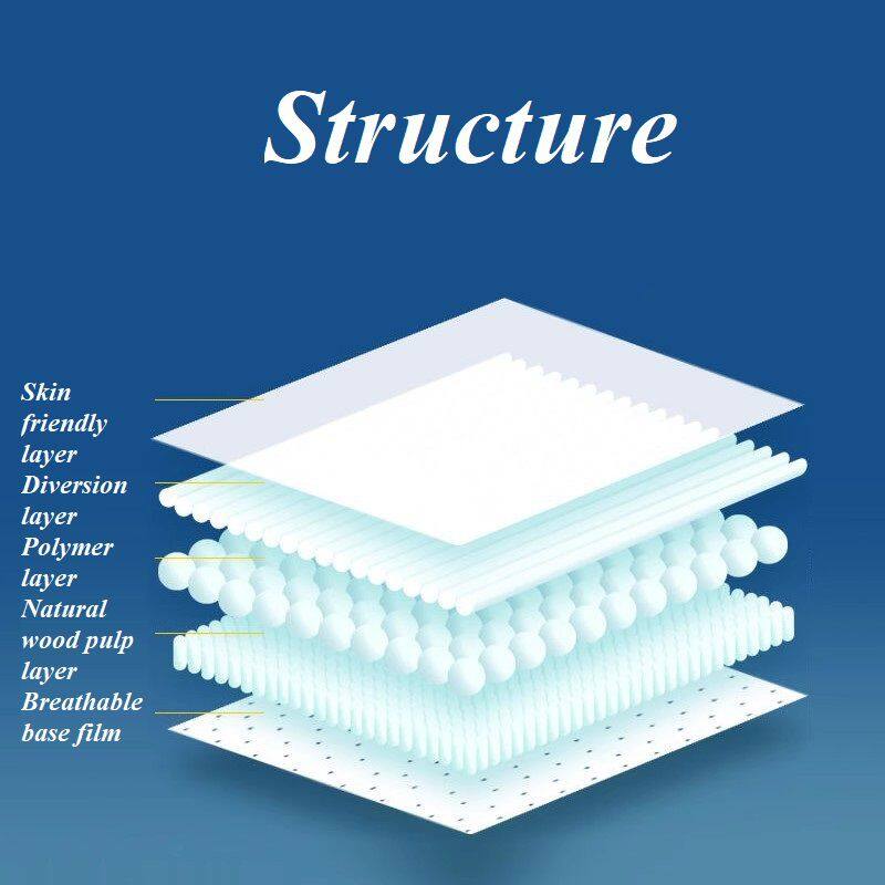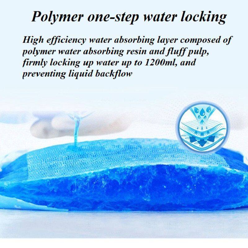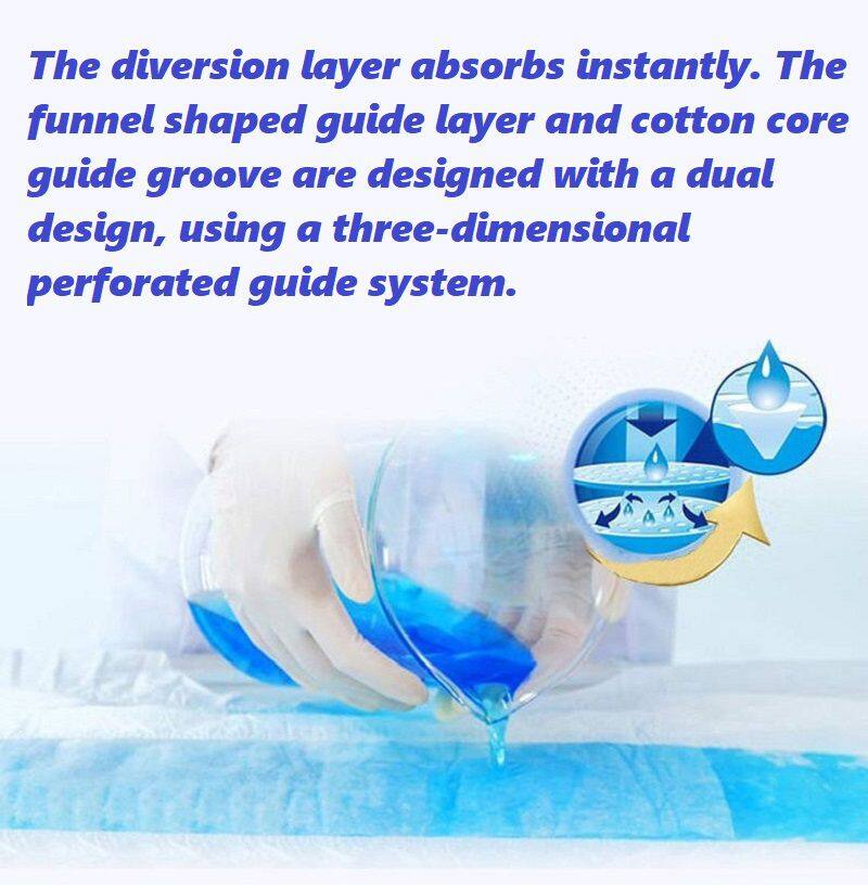 The high-efficiency water absorbing layer is composed of polymer absorbent resin and fluff pulp, which firmly locks in up to 1200ml of water and prevents liquid backflow.