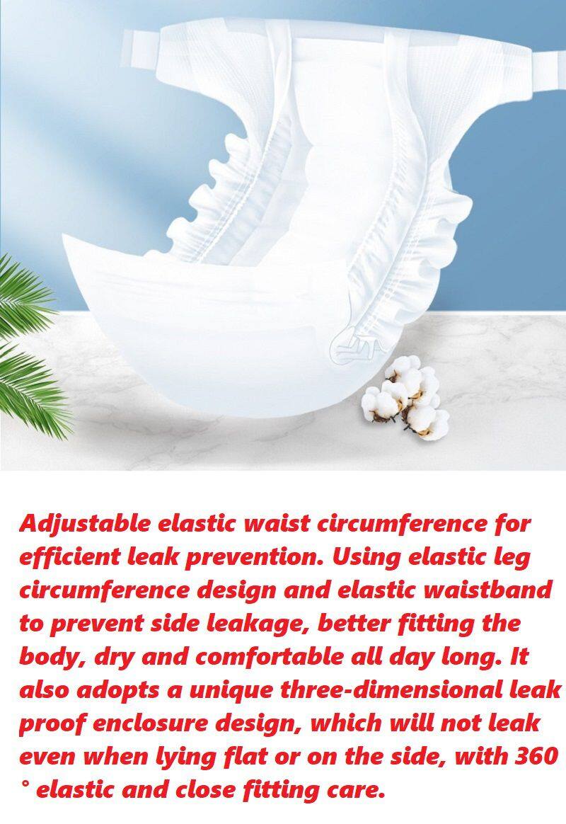 Adjustable elastic waist circumference for efficient leak prevention. Using elastic leg circumference design and elastic waistband to prevent side leakage, better fitting the body, dry and comfortable all day long. It also adopts a unique three-dimensional leak proof enclosure design, which will not leak even when lying flat or on the side, with 360 ° elastic and close fitting care.