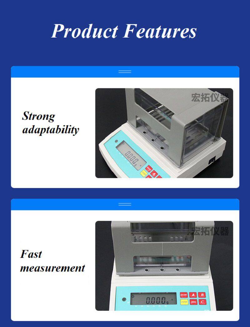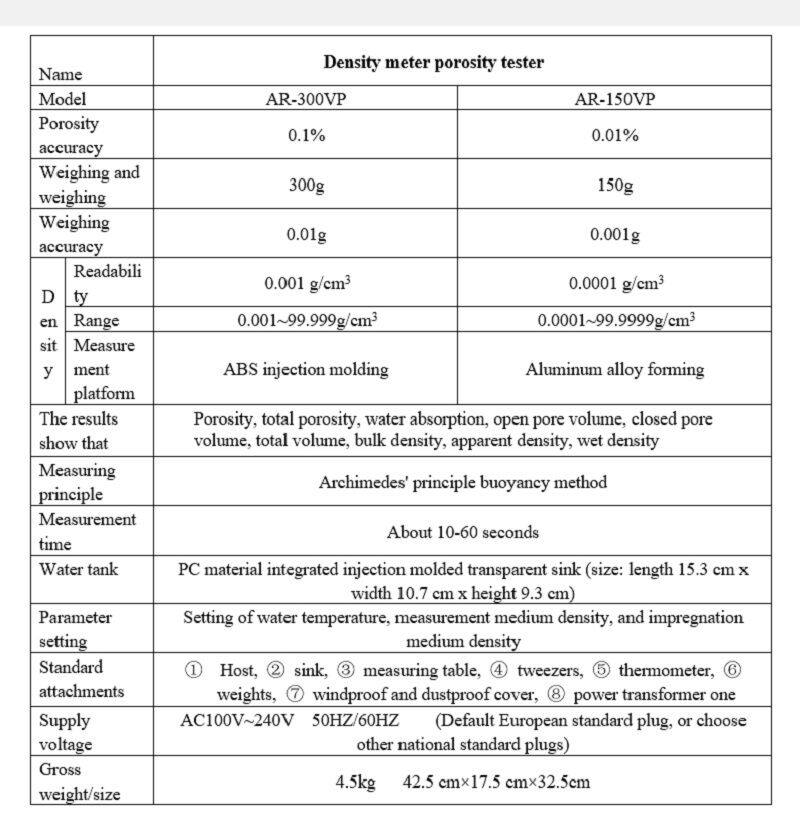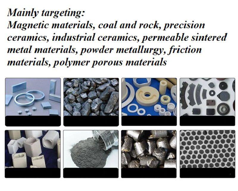 Magnetic materials, coal and rock, precision ceramics, industrial ceramics, permeable sintered metal materials, powder metallurgy, friction materials, polymer porous materials, new materials research laboratory. Adapt to boiling method, vacuum saturation method, and wax sealing method for measurement, and quickly read measurement values based on Archimedes' buoyancy principle.