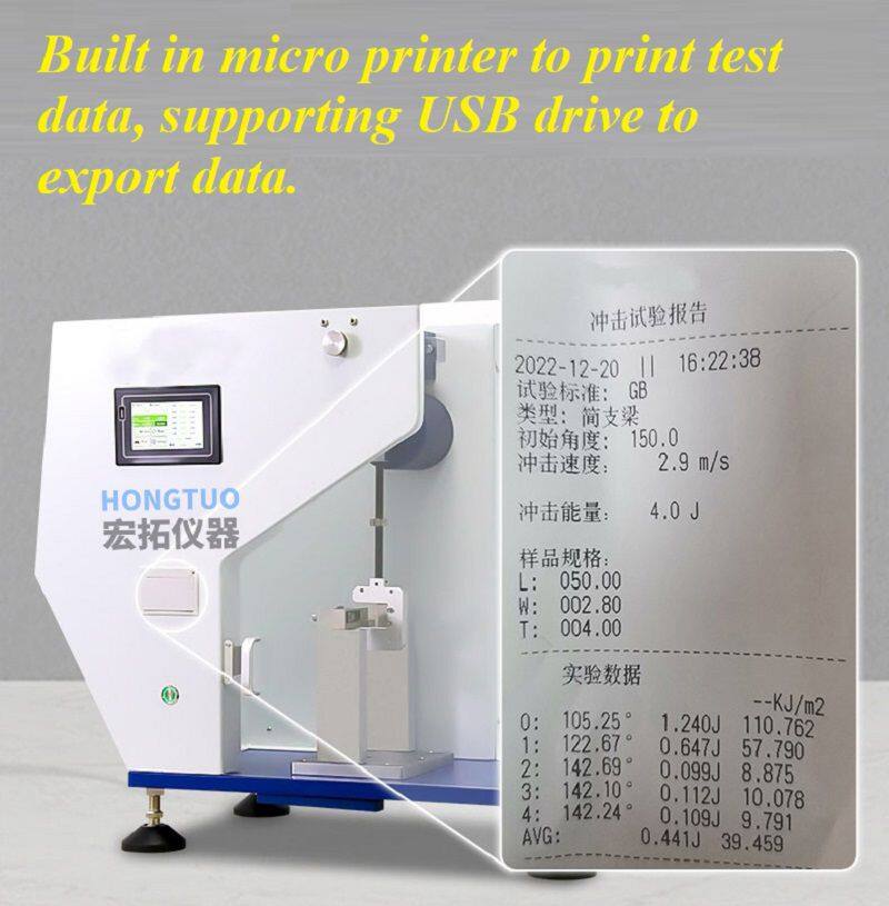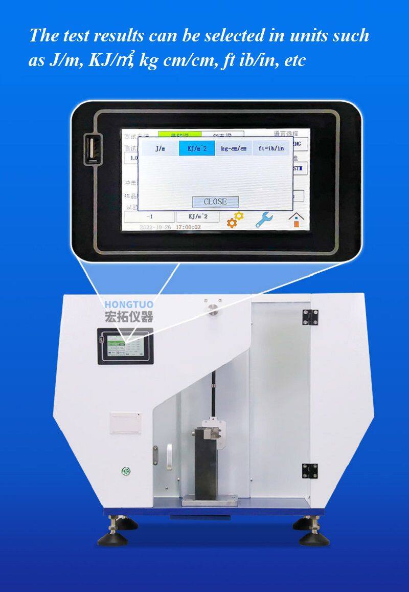 6. English operation interface, test results can be selected in units such as J/m, KJ/㎡, kg cm/cm, ft ib/in, etc;
