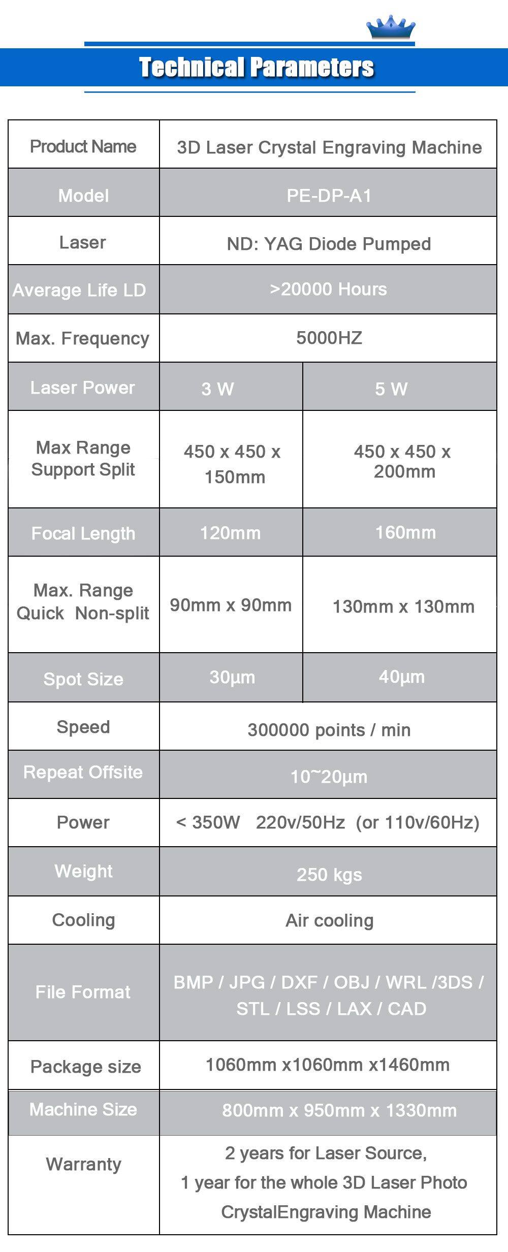 Warranty | 2 years for Laser Source, 1 year for the whole 3D Laser Photo CrystalEngraving Machine | |