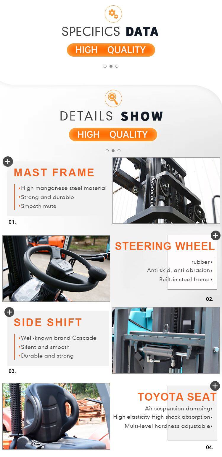 New Battery Forklift 1.5 Tons 3 Tons Truck Electric Solid Tire and Toyota Seat Safety Lift