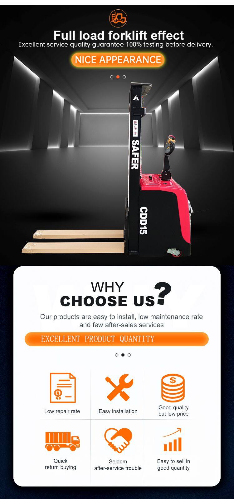 - Safer High Quality 2 Ton Telehandler Full Electric Walkie Pallet Stacker Automatic Transmission Forklift Price