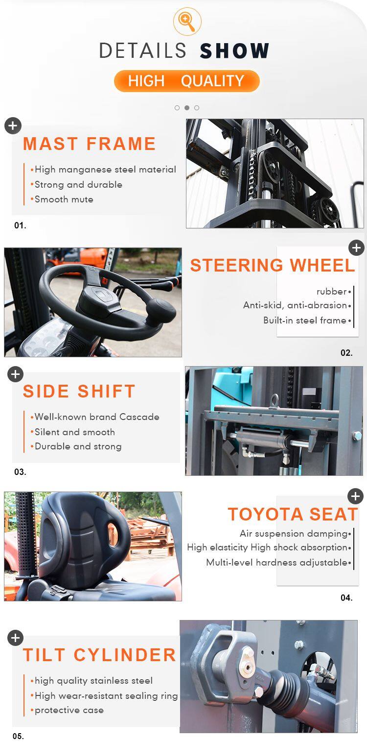 New Battery Forklift 1.5 Tons 3 Tons Truck Electric Solid Tire and Toyota Seat Safety Lift