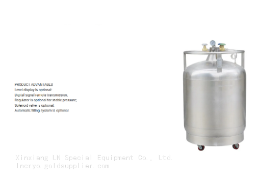 Self-pressurized liquid nitrogen tank is a kind of equipment used for liquid replenishment and turnover transportation of liquid nitrogen, liquid oxygen and liquid argon biological containers. It is made of high-quality stainless steel with a booster system that generates its own pressure for continuous drainage. The self-pressurized liquid nitrogen tank is composed of a control system and a tank body. The control system includes inlet/discharge valve, booster valve, vent valve, double safety valve, liquid level gauge and pressure gauge, etc.