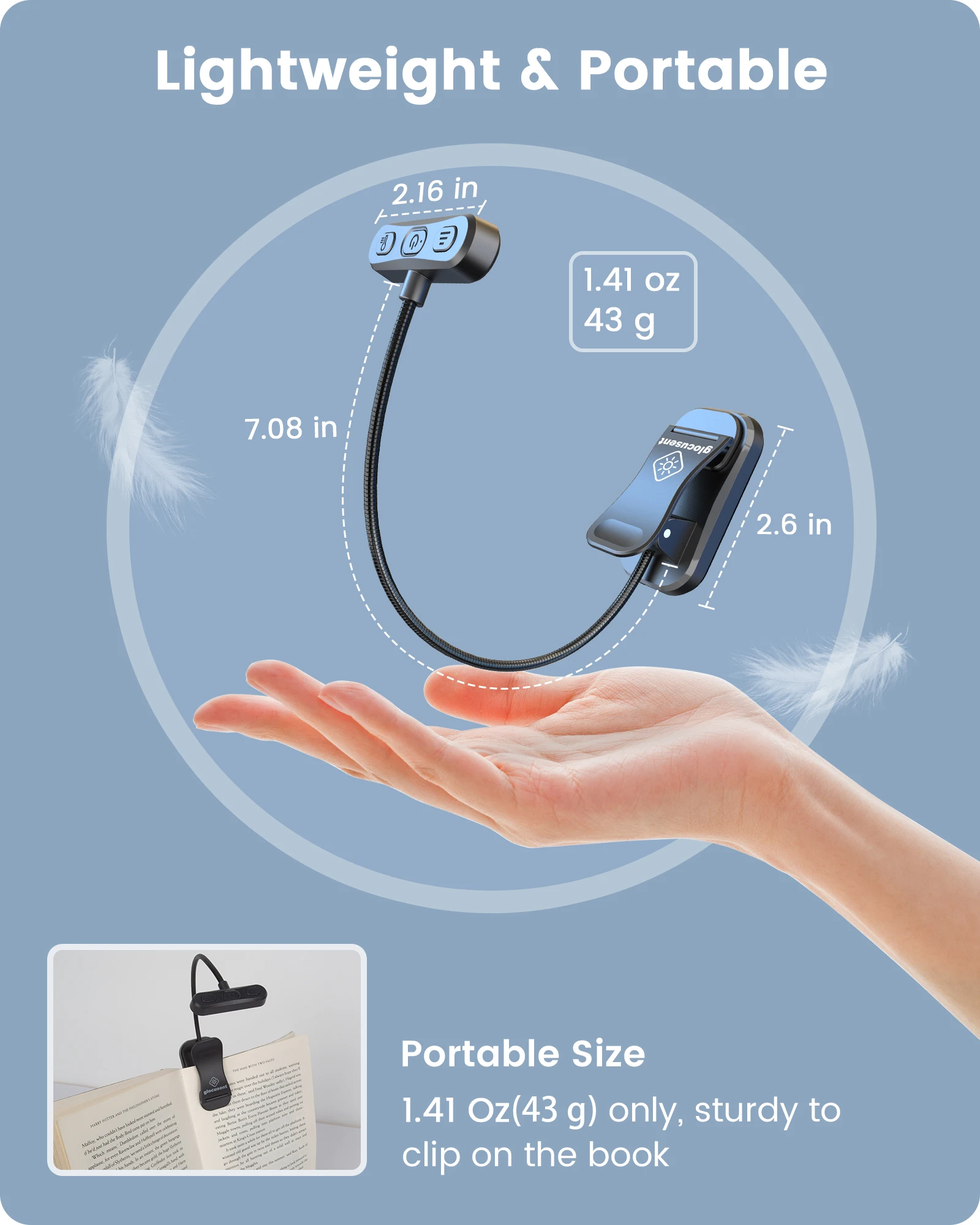 - 2024 New Style LED Clip on Mini Reading Light USB Rechargeable Book Light for Reading in Bed