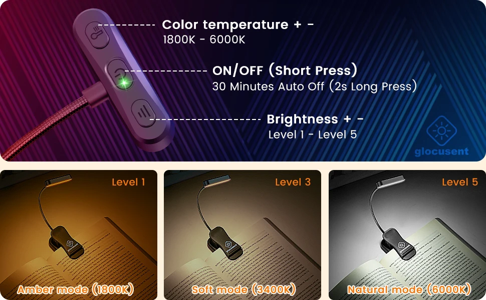 - Read Anywhere Convenient 1600K 4000K 6000K Mini Clip Led Book Light
