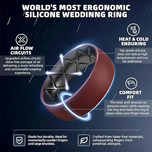- Wholesale Silicone Wedding Rings for Men - Available in Sizes 8 - 17, Including 9, 9.5, 10, 11, 12, and Stylish Black Options!