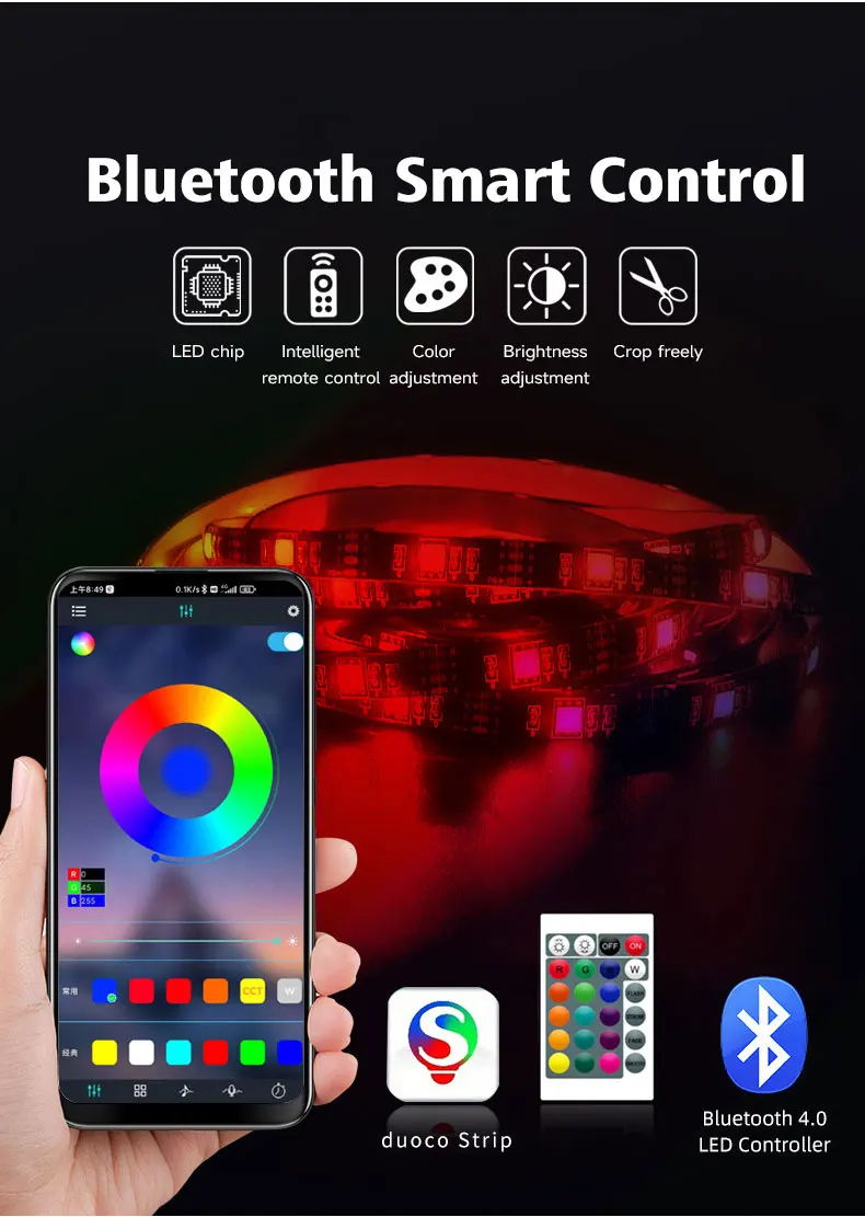 5M 10M RGBIC Smart LED Kit Music Sync App Remote Control USB 5V Bedroom TV PC Backlight Ambient 30m Bluetooth Led Light Strips