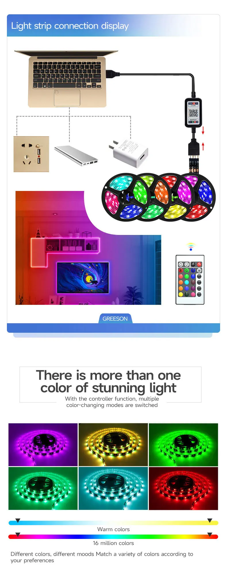 5V USB 5050 Led Strip Lights RGB Music Bluetooth APP Control For Bedroom TV Wall And Living Room Decoration Party