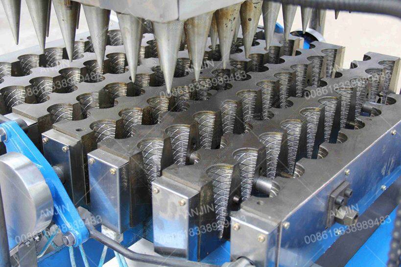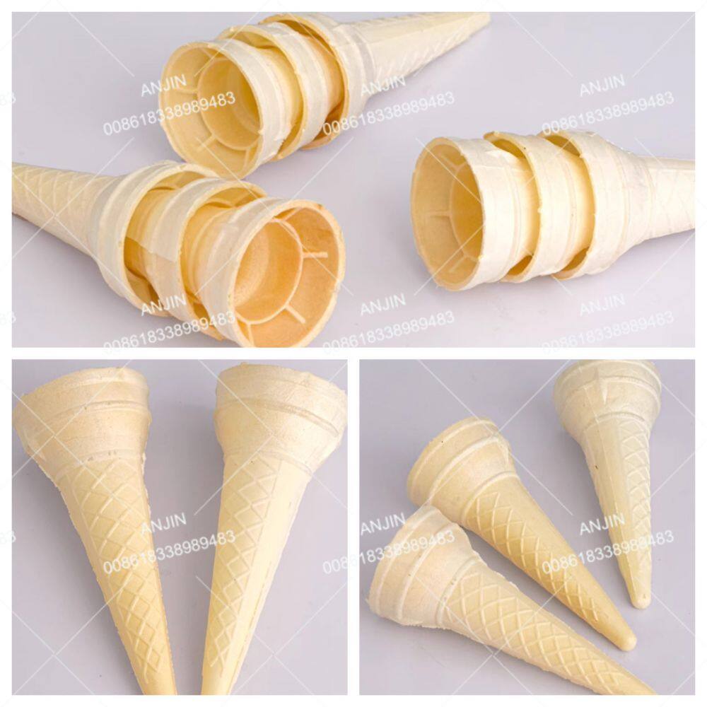 This ice cream cone making machine can make different shapes and sizes of ice cream cones, molds can be replaced for making different products on the same machine.