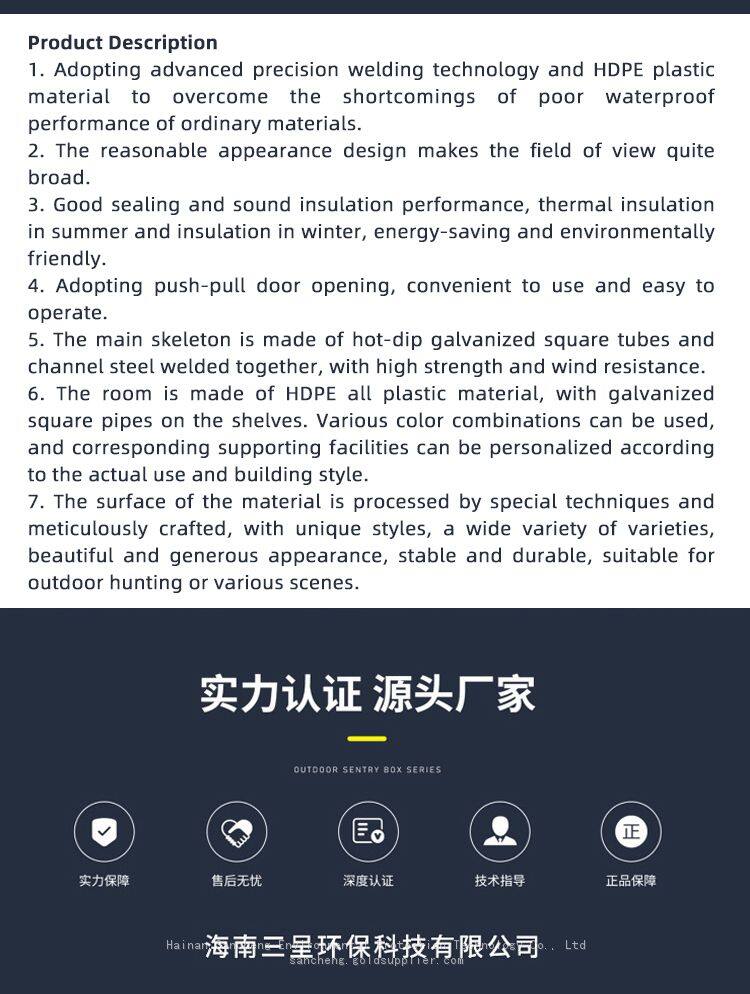 Outdoor Hunting Lounge Hunting Platform HDPE Full Plastic Steel Structure Fishing House