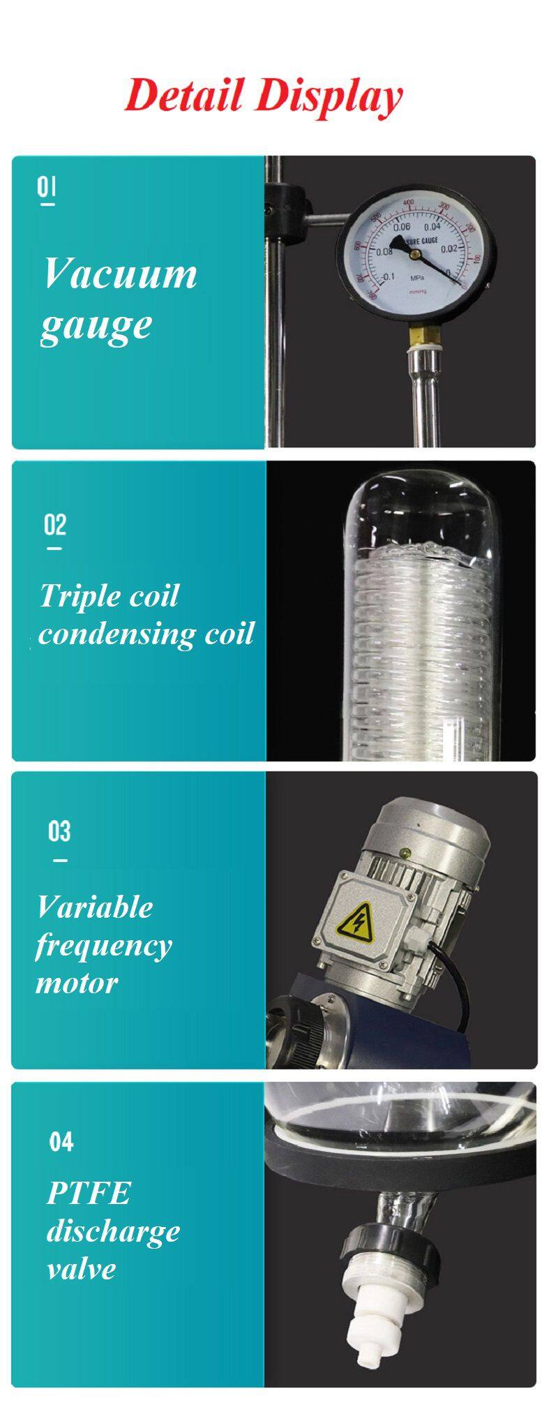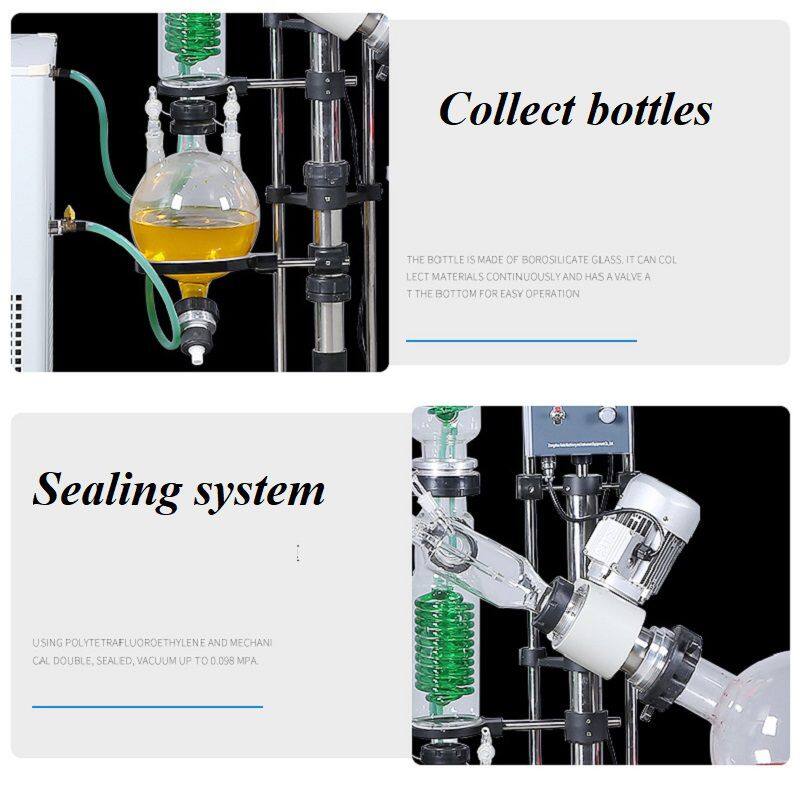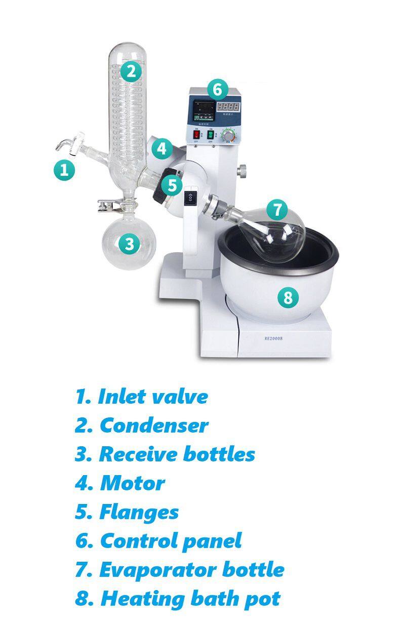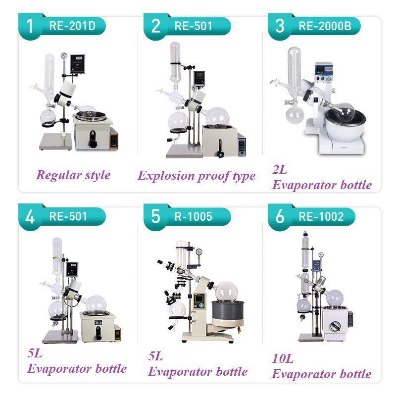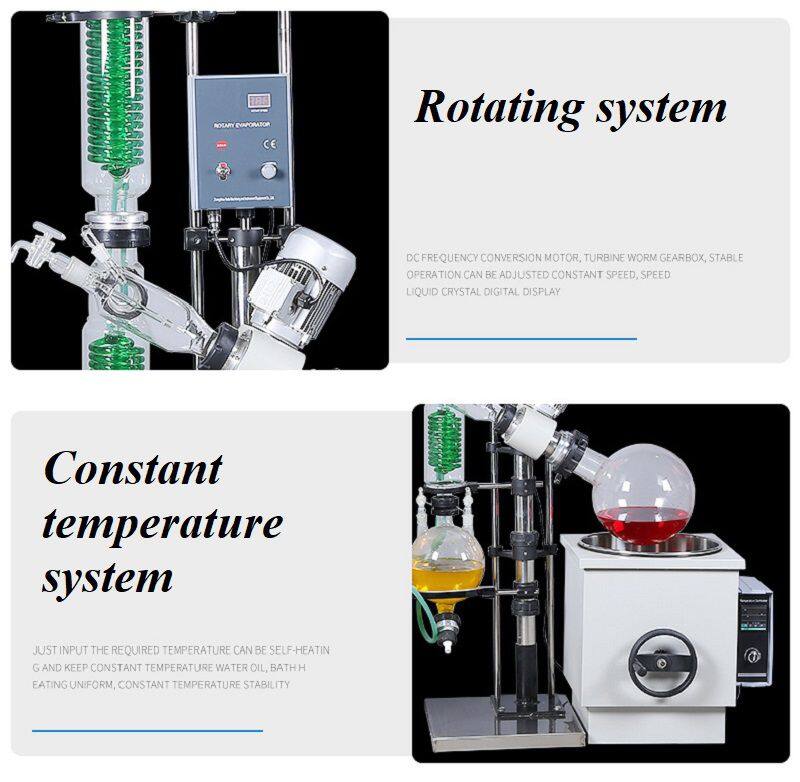 Working principle: The rotary evaporator is suitable for continuous or intermittent distillation extraction under normal pressure or vacuum conditions, especially for concentrating, crystallizing, separating, and recovering thermosensitive materials.