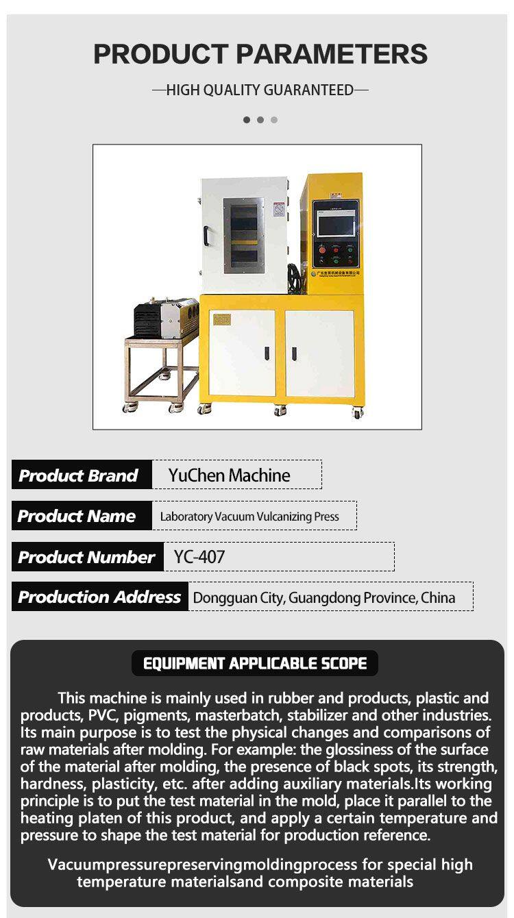 Combining the above features, our laboratory vacuum vulcanising machine is ideal for material research, formula testing and small batch production in scientific research institutes, colleges and universities as well as rubber products R&D departments. It not only enhances the efficiency and quality of the vulcanisation process, but also provides a strong guarantee for the performance of the final product.