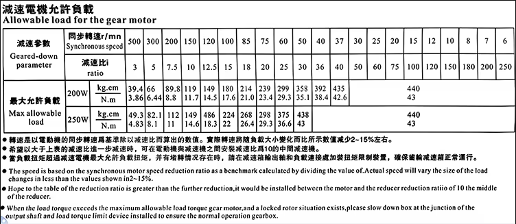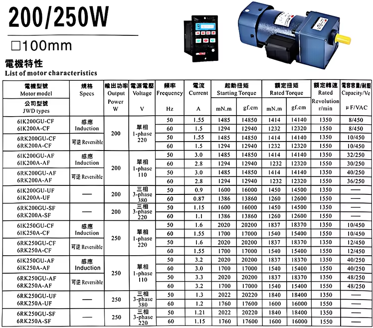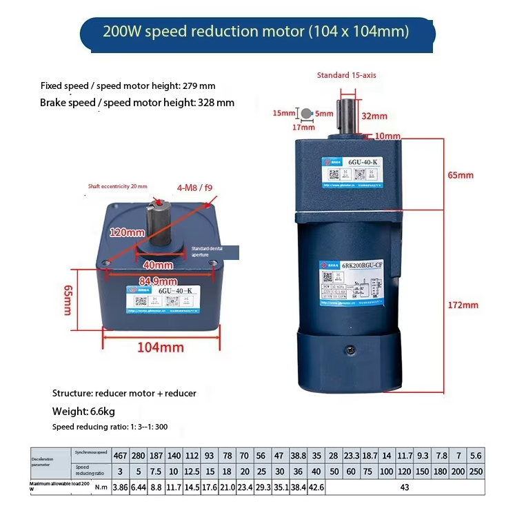 | Reduction gearbox model | 6GU1:3~250KB |