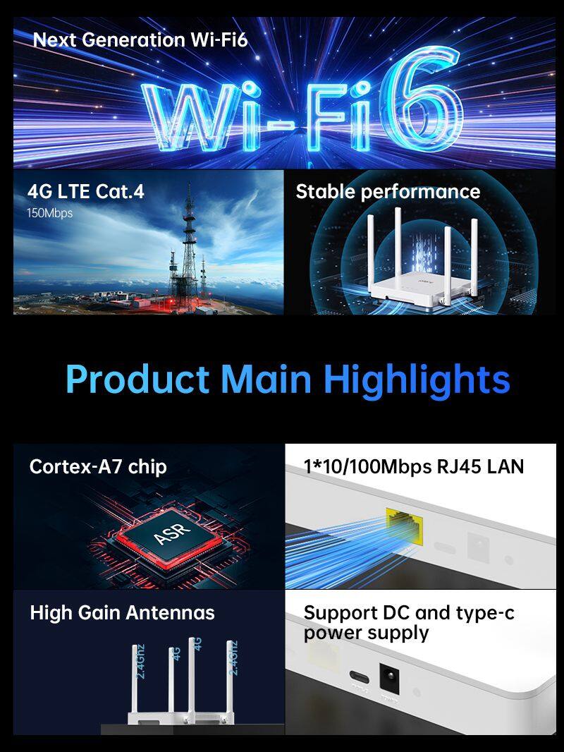 Home > Products > 4G ROUTER > Plery R602 2.4GHz 300Mbps Unlocked 4G Wifi Hotspot Routers Wifi6 Internet SIM Card Router for Rural