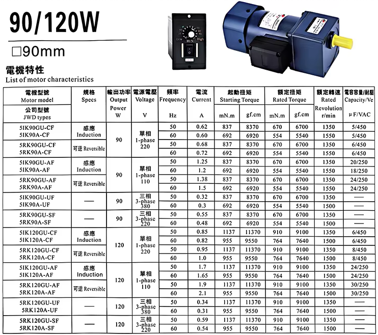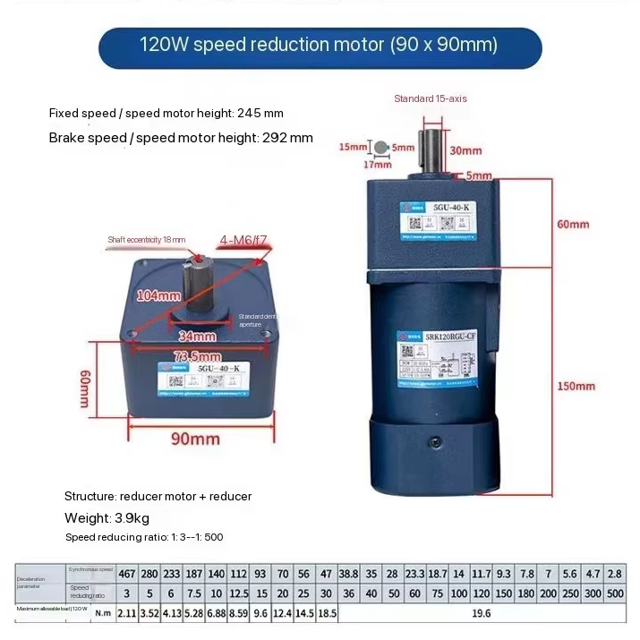 For Machine Assembly 1300/1550rpm With Reduction Gearbox 120W Constant Speed Motor
