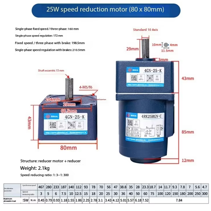 Constant Speed Motor With Reduction Gearbox 25W AC Gear Motor 220/110V 1300/1550rpm