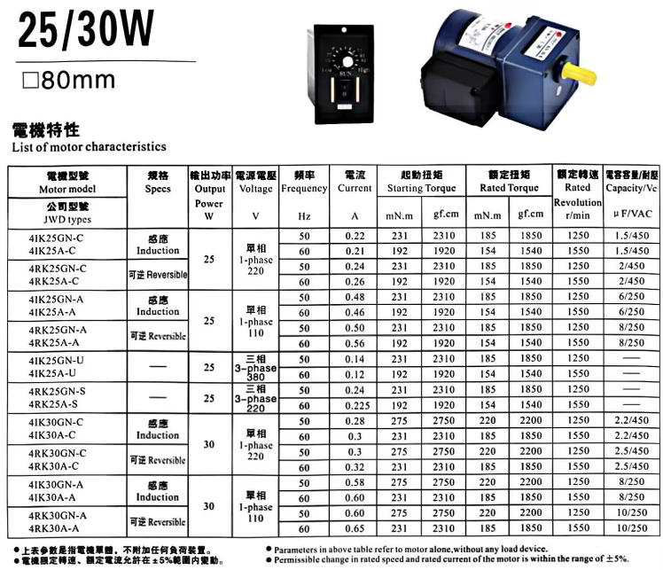 | Reduction gearbox model | 6GU1:3~250KB |
