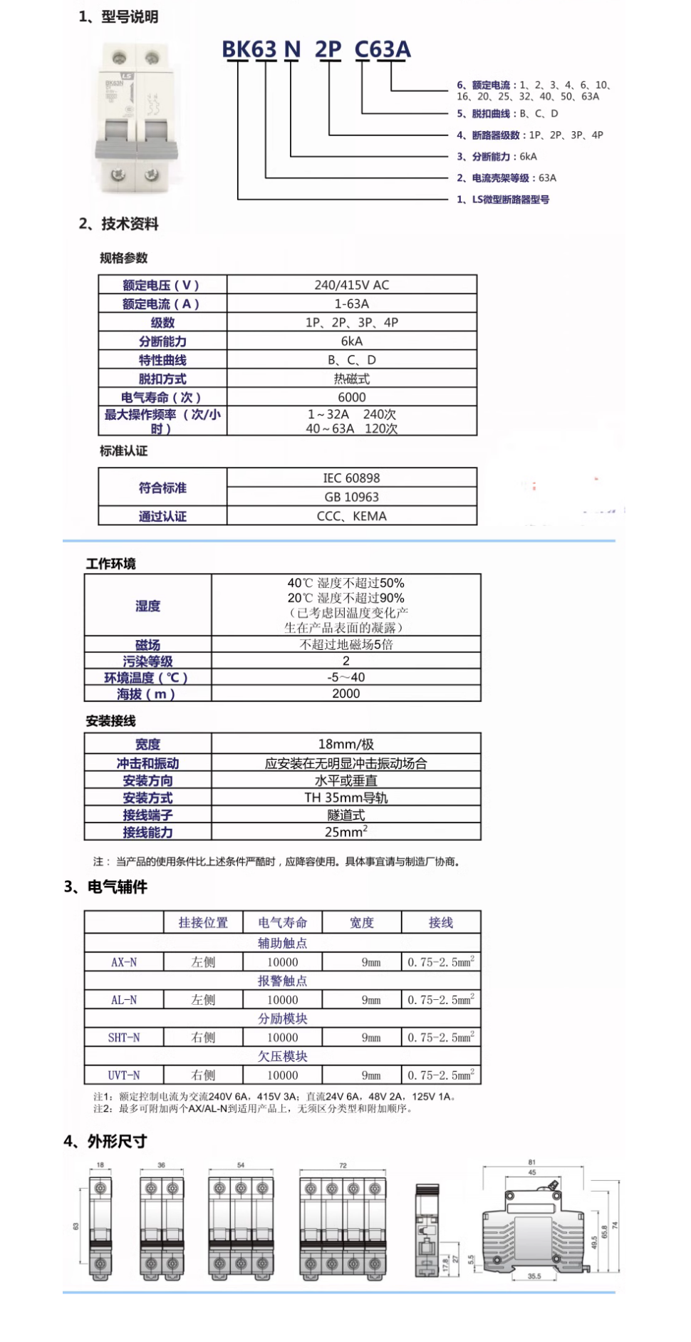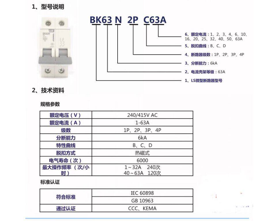 Home > Products > LA63N BK63N Miniature Circuit Breaker > LS Official Genuine New Original BK63N 4P C D Type Circuit Breaker