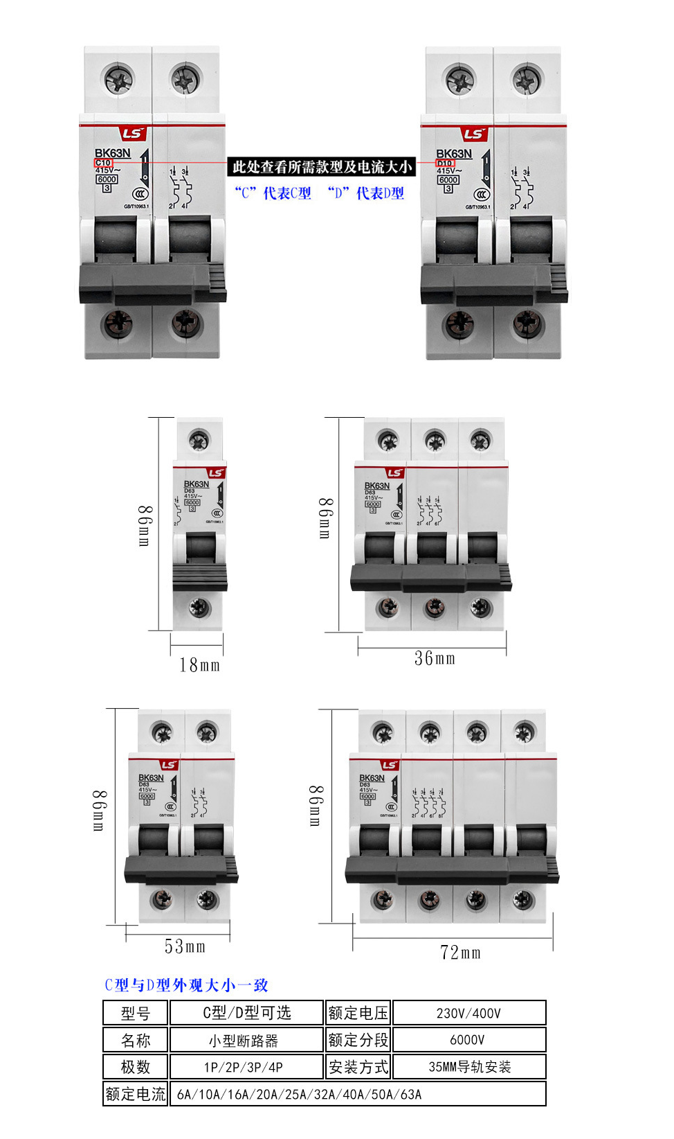LS Official Genuine New Original BK63N 4P C D Type Circuit Breaker