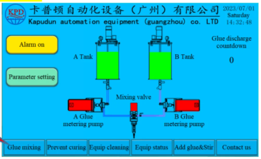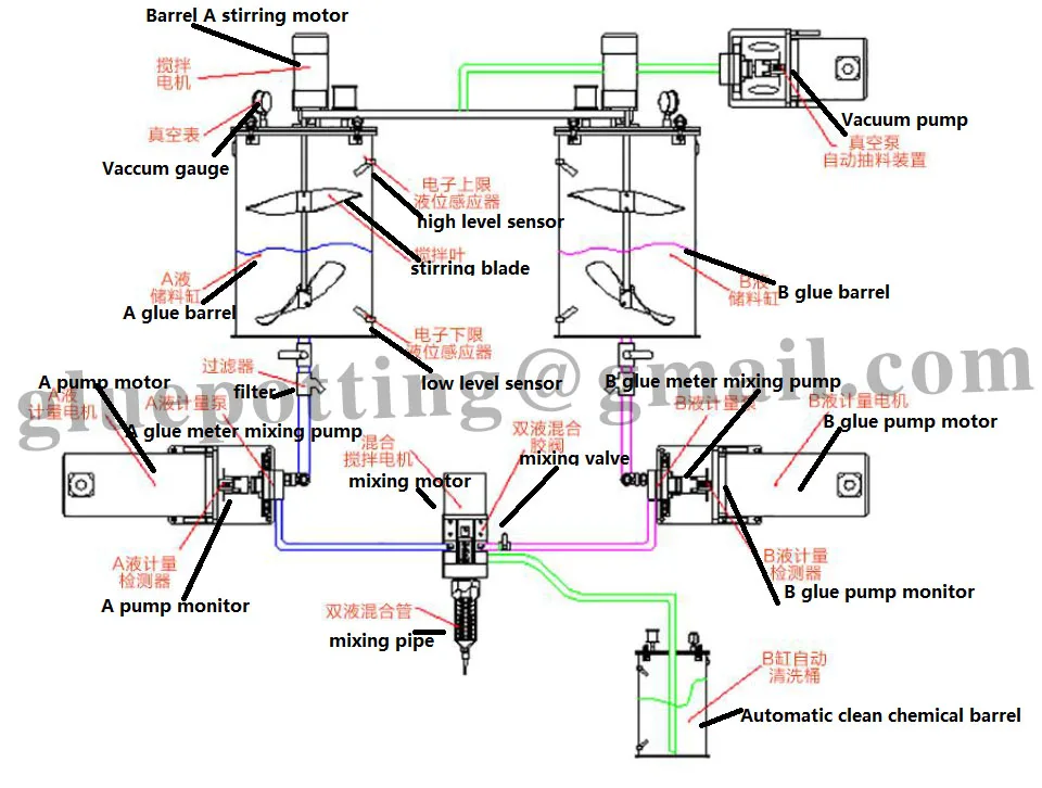 * Tank Stirring :A and B tank configure with stirring motors and blades to prevent material sediment in the tank bottom .