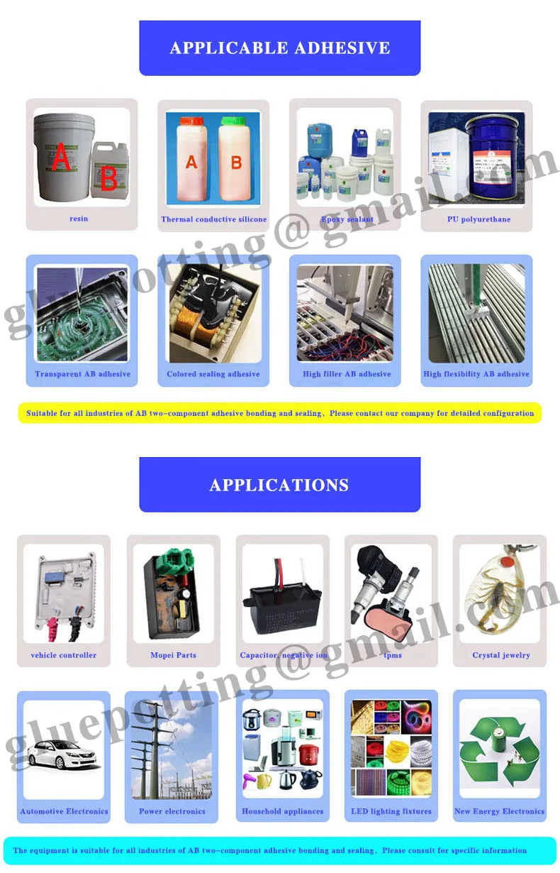 1. Potting &Casting: electronics componnets , PCB board, Capacitor, power supply, transformer, ignition coil,reverse sensor,circuit board, filter products ,underwater parts, electronic ballast ,aviation parts, aerospace ...