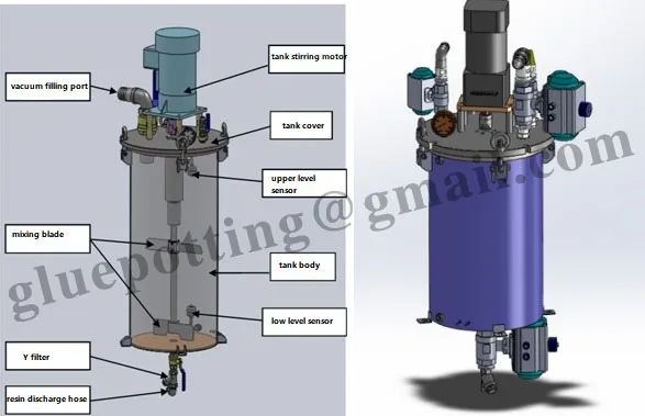 2. Tank with motor stirrer that prevent the glue from sediment and keep the potting material in constant temperature.