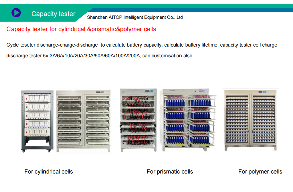 Capacity Tester: Suitable for cylindrical, prismatic, and polymer cells, ensuring accurate capacity assessment.