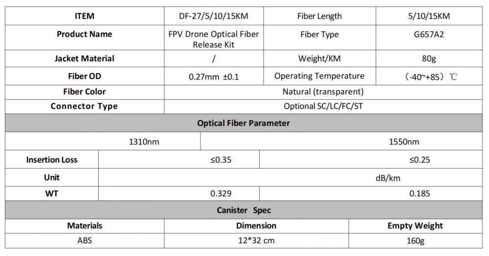 FPV Drone Optical Fiber Release Kit Parameter: