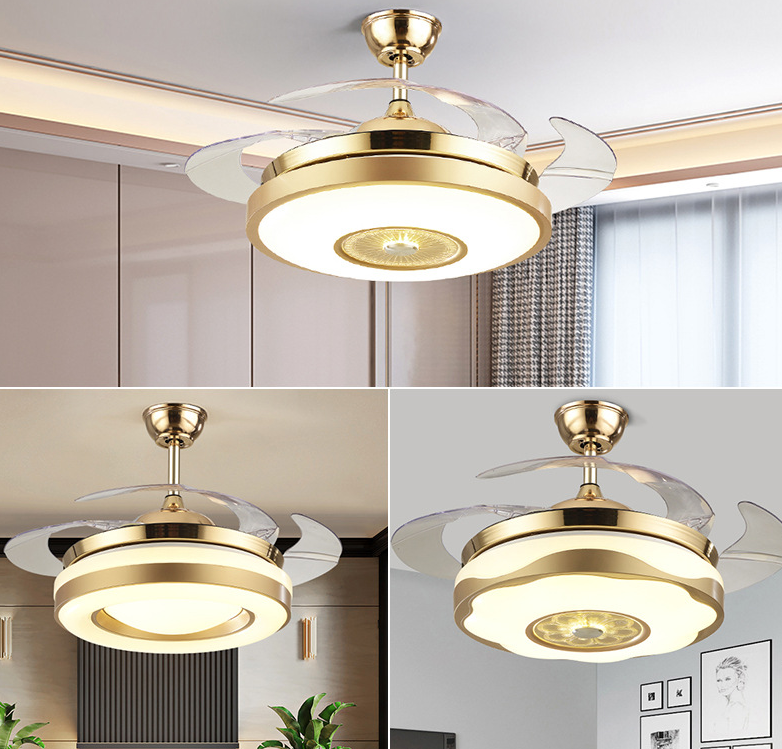 Golden Invisible Fan Light, Variable Frequency Ceiling Fan Light, Dining Room Bedroom Living Room Main Light, (Wechat:13510231336)