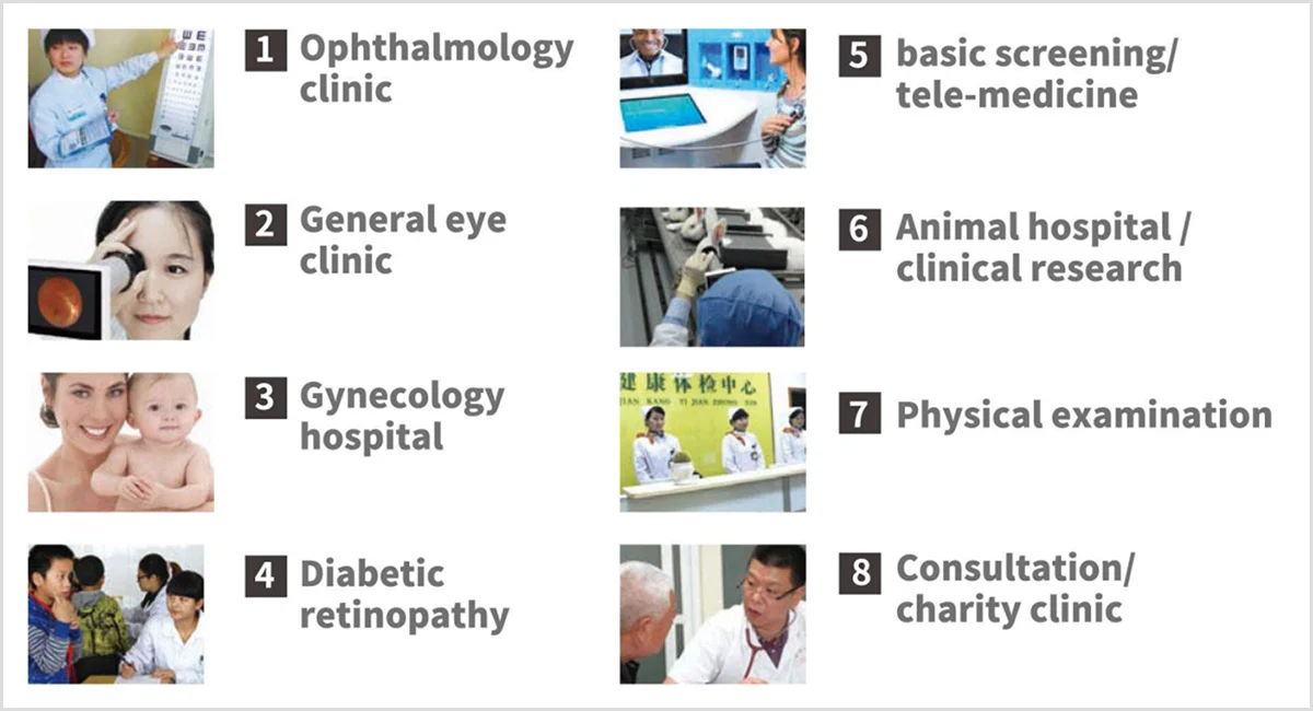 It is designed for retinal imaging photography and disease screening, applied in out diagnosis,bedside diagnosis and remote medical treatment.