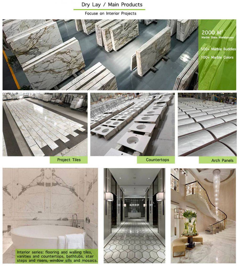 -Indoor Floor or Wall Paving Slabs with Calacatta Marble Cut-to-Size Tiles, with standard sizes” 12”x12”, 24”24”, or other sizes.