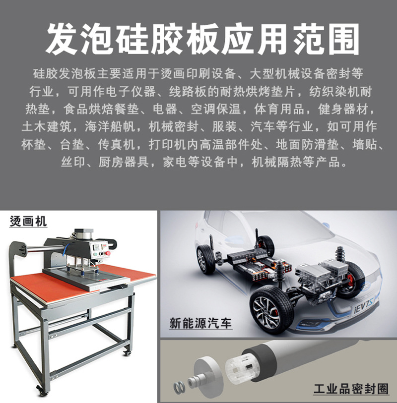 Color: Red Usage: Suitable for industries such as hot stamping and printing equipment, large mechanical equipment sealing, etc. It can be used as a heat-resistant baking pad for electronic instruments, circuit boards, textile dyeing machines, food baking mats, electrical appliances, civil engineering and construction, ocean sails, etc