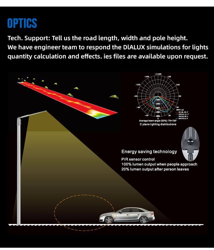 Advanced Lighting Technology: Equipped with 3030 SMD LED light sources, this street light provides a high color rendering index of 70 and a wide color temperature range of 2700-6500K, ensuring excellent color accuracy and visibility.
