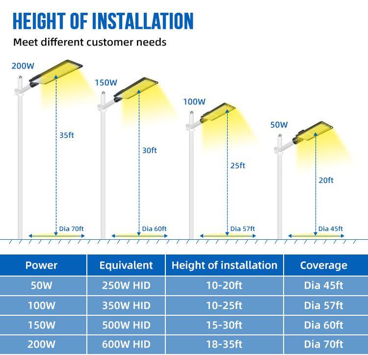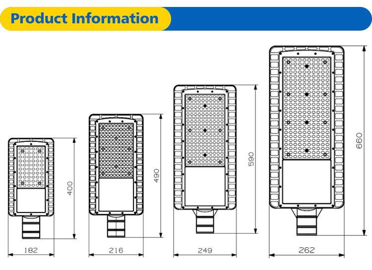 Energy Efficiency and Long Lifespan: This 50W/100W/150W/200W LED street light boasts an impressive lifespan of 50,000 hours, reducing maintenance costs and energy consumption. Its high luminous efficiency of 120-150 lm/W ensures optimal brightness.