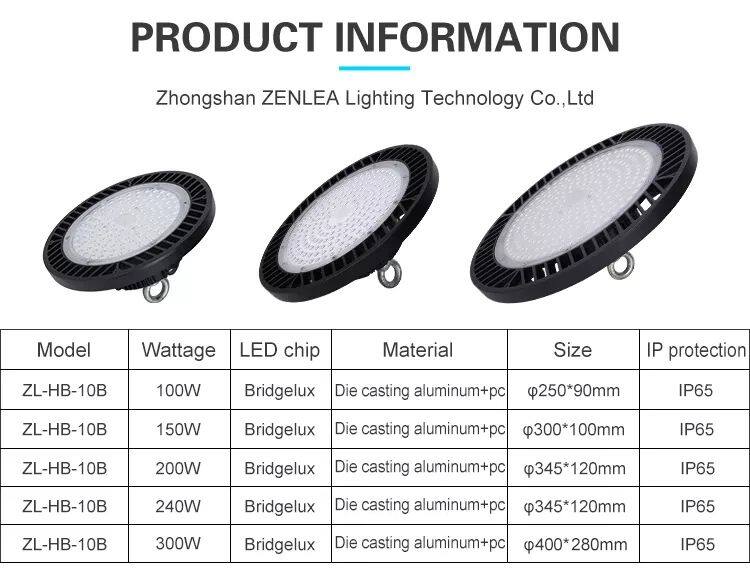 - High Quality Die Cast Aluminum Warehouse Workshop Lamp Waterproof Ip65 100w 150w 200w 240w 300w Ufo Led High Bay Light