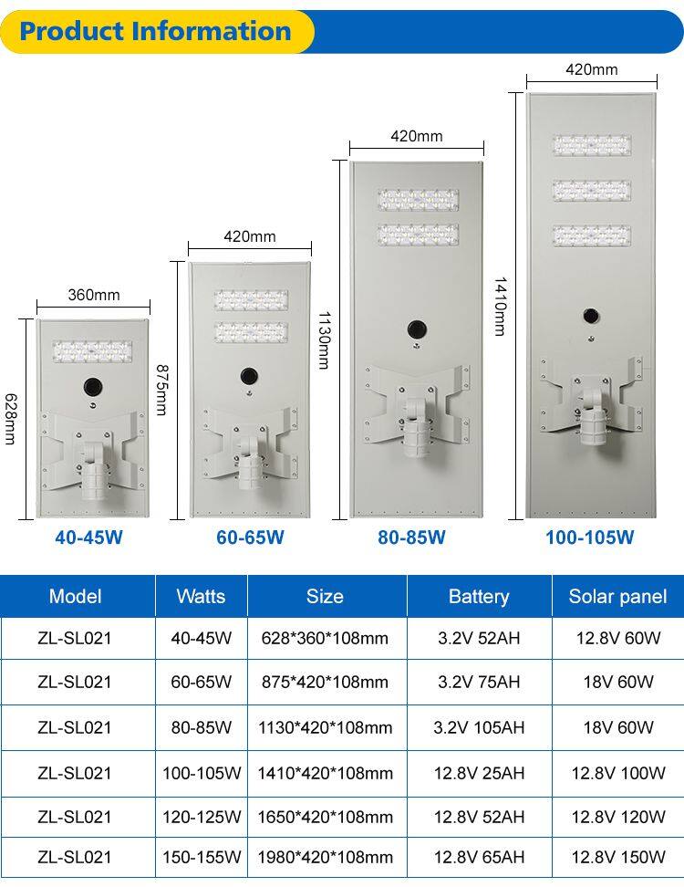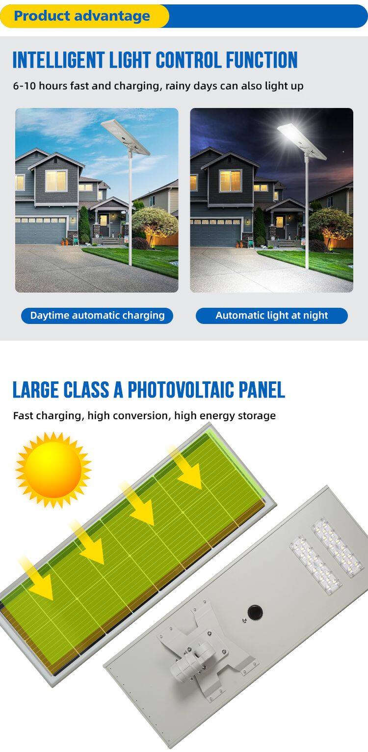 High-Efficient Solar Power: This solar street light is equipped with a high-efficiency solar panel, providing a power range of 40W-125W, and a luminous efficiency of 100lm/W, making it an ideal choice for energy-efficient lighting solutions.