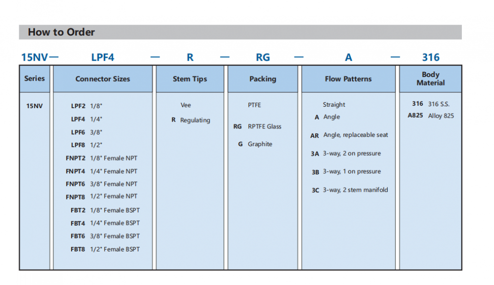 - Vee or Regulating stem tips for options