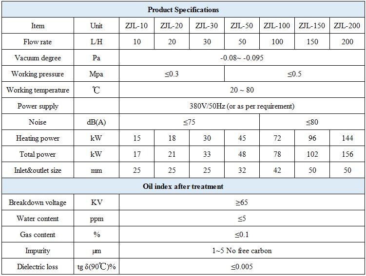 Generally it is used for vacuum processing of transformer oil, new oil, imported oil, mutual conductor oil, and capacitor oil of power transmission system or refrigerator oil ect. . Also, it can be used for vacuum filling and drying of transformer.