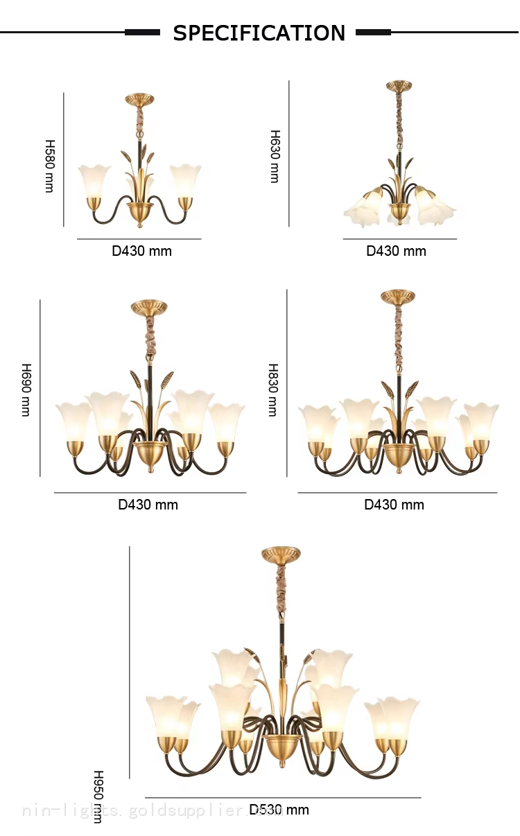 | Size (mm) | Overall Size: D430*H580 Lamps Shade: D170 | Overall Size: D430*H630 Lamps Shade: D170 | Overall Size: D430*H690 Lamps Shade: D170 | Overall Size: D430*H830 | Overall Size: D530*H950 Lamps Shade: D170 |