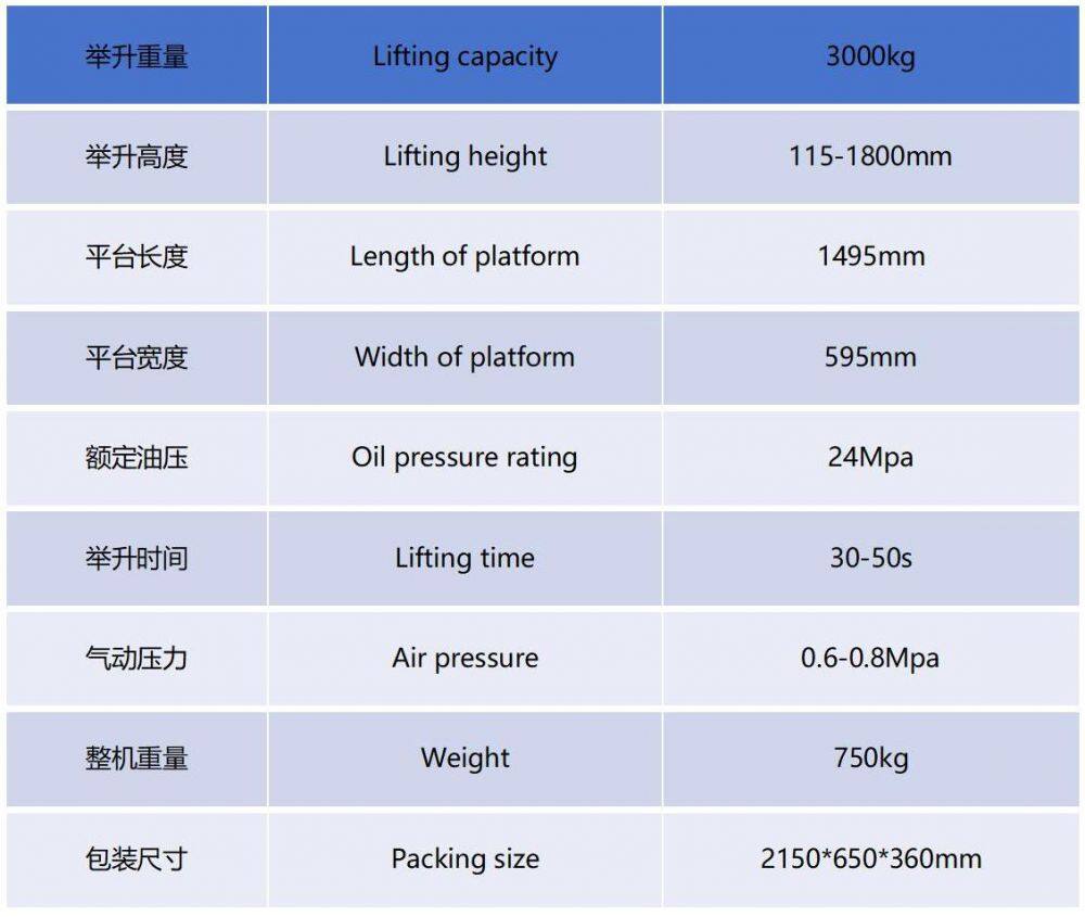 | Lifting Capacity | 3000KG | Design | Scissor |