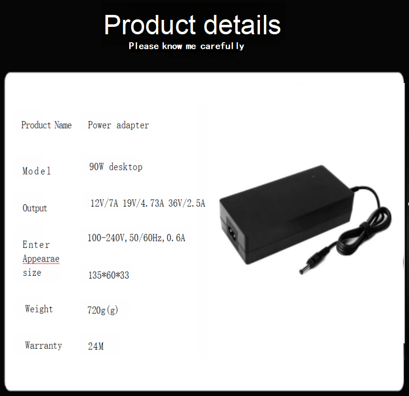 Output: 12V/6A, 19V/4.73A, 36V/2.4A (maximum 90W for single channel)