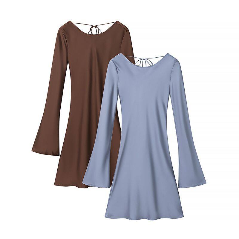 European-style and American-style feminine and spicy girl's tight-fitting skirt in earthy tones with back ties and a one-piece dress style.