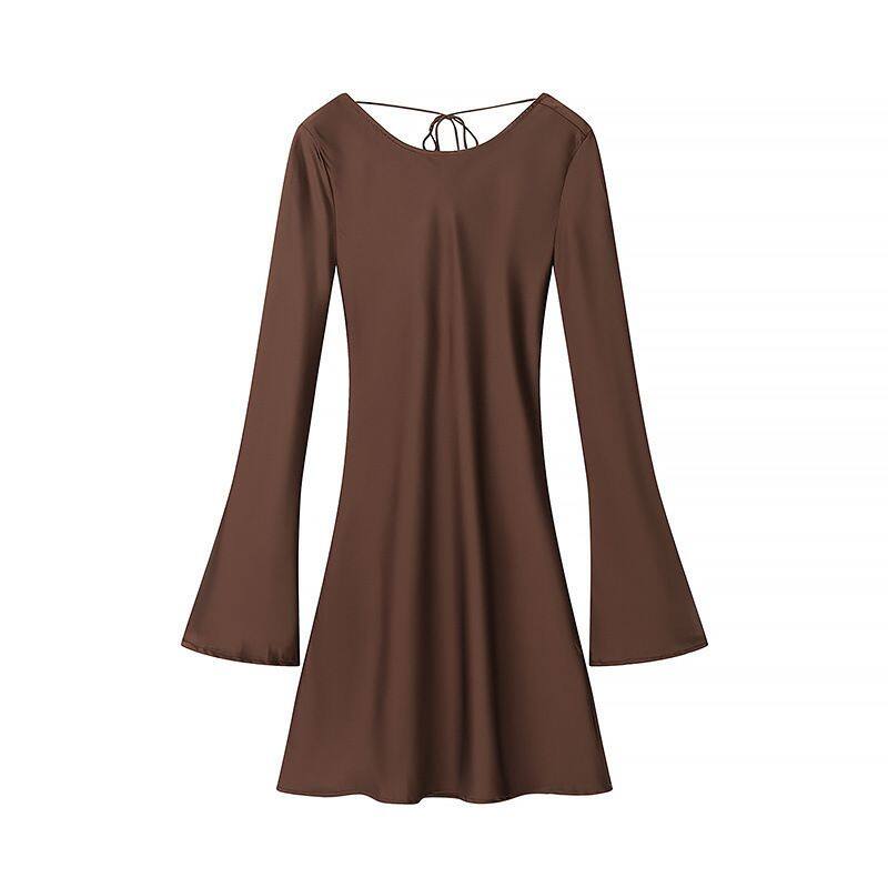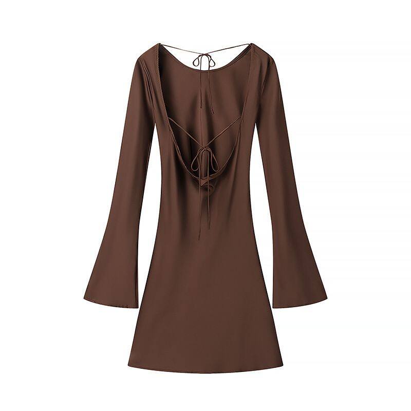 European-style and American-style Feminine and Spicy Girl's Tight-fitting Skirt in Earthy Tones With Back Ties and a One-piece Dress Style.