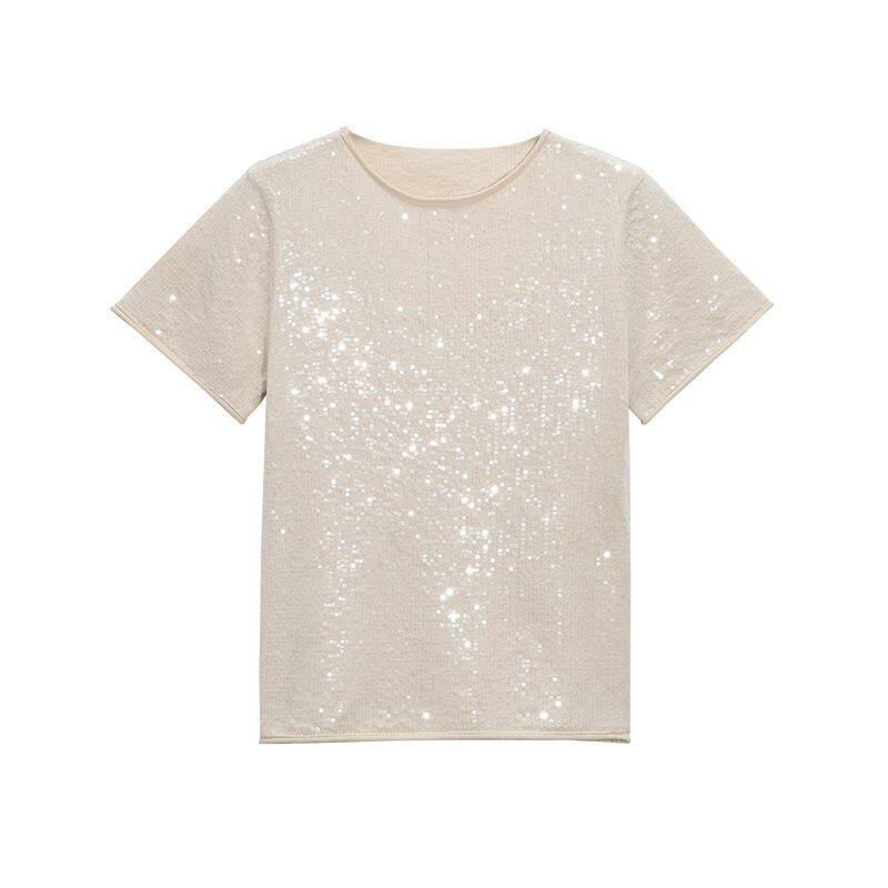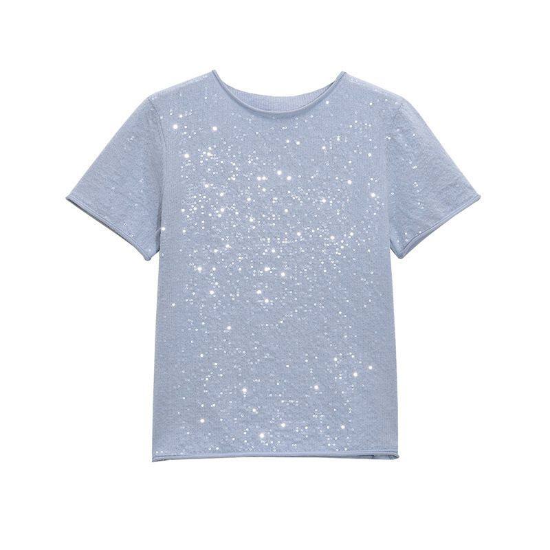 Spring New Style Knitted Sweater in European Style, Round Neck, Pure Color, Loose Fit, Long-sleeved, Women's Style Short-sleeved Shirt