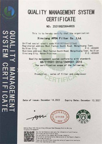 Xinxiang APDA Filter Co., Ltd. is a modern and scientific filter manufacturer. We integrate filter scientific research, design, production, sales and service. We absorb the newest technology from at home and abroad to design filter. We set up advanced production line, and our QC system has passed ISO9001:2008. In 2008 we built up a filter lab to make sure our finished filters have strict test before enter warehouse. We are sure that we can provide the best quality products and consummate design plans for your filter. our company will provide our worldwide customers with the most advanced, good-looking and reliable products.