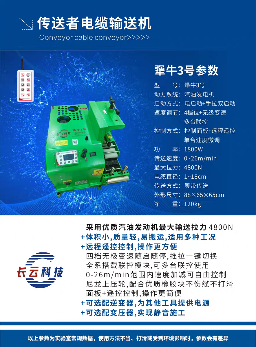 Changyun Technology Enhanced Cable Conveyor Remote Control Speed Adjustment Fuel Version and Electric VersionNegotiableMOQ: 1 Unit