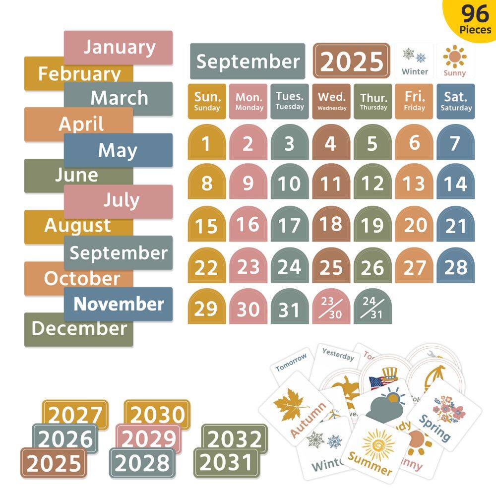 【Designed Specifically for Kids】The calendar pocket chart with 46 large clear pockets and 96 pieces boho style cards. through this calendar pocket chart, kids can learn about dates, weeks, months, years, seasons, holidays, and some activities. convenient for students and kids to view and learn.