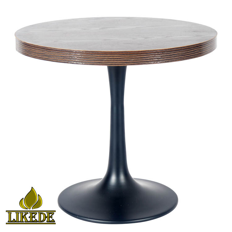 Heavy Duty Tea Table With Tulip and Trumpet Base in Black Aluminum Carbon Steel Stainless Metal Tulip Trumpet Base in Black